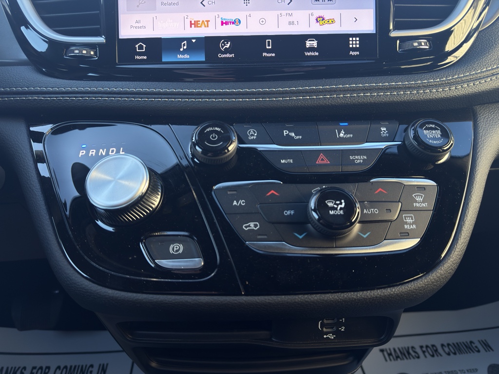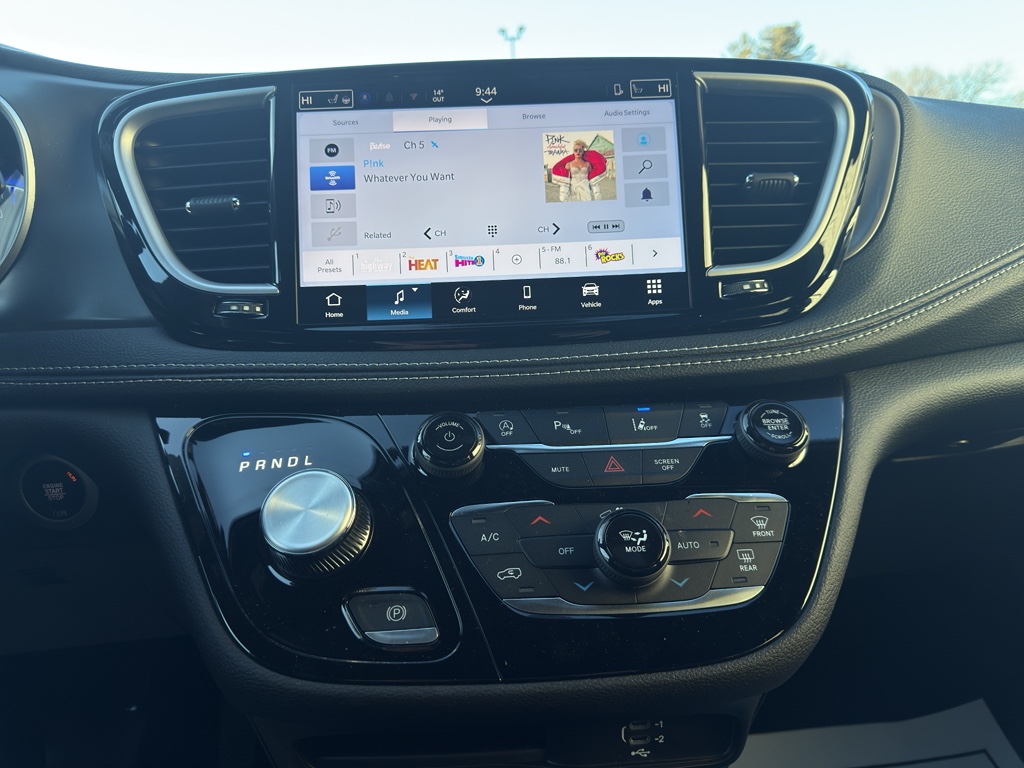 See what's behind you with the back up camera on this model. Start the vehicle from inside with remote start. Bluetooth technology is built into this vehicle, keeping your hands on the steering wheel and your focus on the road. This Chrysler Pacifica's Lane Departure Warning helps keep you in your lane. The leather seats in this model are a must for buyers looking for comfort, durability, and style. This model offers Android Auto for seamless smartphone integration. This mini van has auto-adjust speed for safe following. Keep your hands warm all winter with a heated steering wheel in it . This unit's Forward Collision Warning system alerts the driver to potential front-end collisions, enhancing safety. The vehicle keeps you comfortable with Auto Climate. Apple CarPlay: Seamless smartphone integration for this model - stay connected and entertained on the go! The state of the art park assist system will guide you easily into any spot.