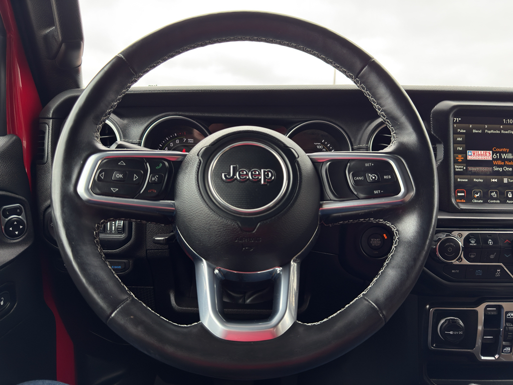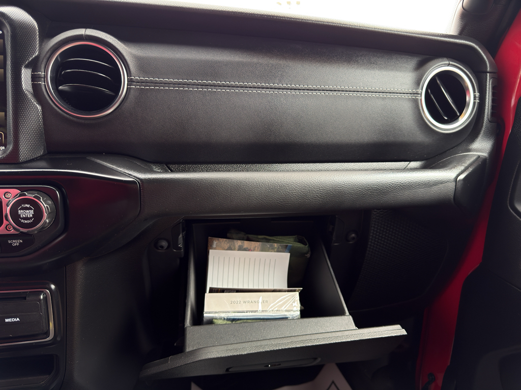 When you encounter slick or muddy roads, you can engage the four wheel drive on this small suv and drive with confidence. Anti-lock brakes will help you stop in an emergency. This Jeep Wrangler Unlimited has an automatic transmission. Protect this model from unwanted accidents with a cutting edge backup camera system. Our dealership has already run the CARFAX report and it is clean. A clean CARFAX is a great asset for resale value in the future. Easily set your speed in this model with a state of the art cruise control system. Increase or decrease velocity with the touch of a button. It has a 2.0 liter 4 Cylinder Engine high output engine. This 2022 Jeep Wrangler Unlimited excites both driver and bystanders with a polished red exterior with racy lines. This small SUV will zip through traffic. The Jeep Wrangler Unlimited has an adjustable telescoping wheel that allows you to achieve a perfect fit for your driving comfort. The vehicle is equipped with the latest generation of XM/Sirius Radio.