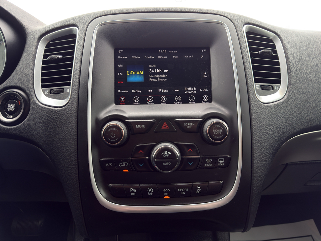 Bluetooth technology is built into it, keeping your hands on the steering wheel and your focus on the road. Apple CarPlay: Seamless smartphone integration for it - stay connected and entertained on the go! See what's behind you with the back up camera on this unit. The state of the art park assist system will guide you easily into any spot. This Dodge Durango has satellite radio capabilities. This unit offers Android Auto for seamless smartphone integration. Keep your hands warm all winter with a heated steering wheel in this Dodge Durango . This mid-size suv offers Automatic Climate Control for personalized comfort. This model is equipped with the latest generation of XM/Sirius Radio. This vehicle has a V6, 3.6L high output engine. Conquer any rainy, snowy, or icy road conditions this winter with the all wheel drive system on this unit. Enjoy the convenience of the power liftgate on this model.