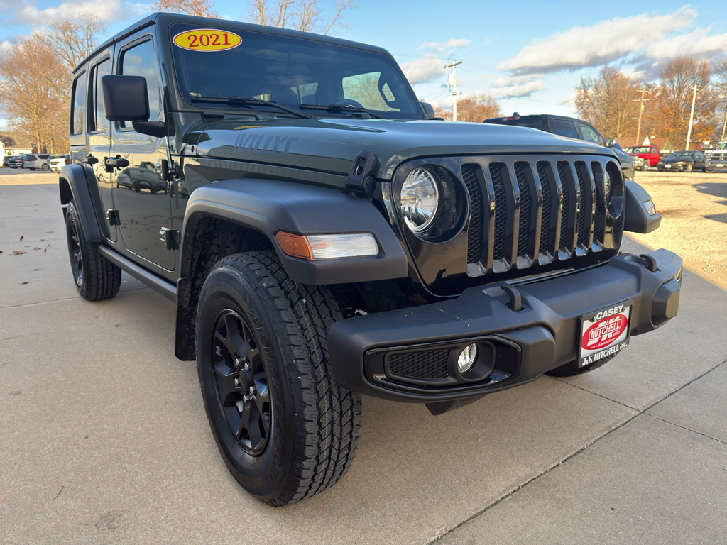 Located in Casey, IL, this Jeep Wrangler Unlimited Willys Sport is competitively priced and represents the best price in the area for a vehicle of this condition and equipment level. Whether you're seeking weekend trails, beach runs, or daily reliability, this Jeep offers a blend of ruggedness and modern tech. Contact us to schedule a test drive in Casey, IL, and experience this capable 2021 Jeep Wrangler Unlimited Willys Sport for yourself. Financing options and vehicle history report available upon request.