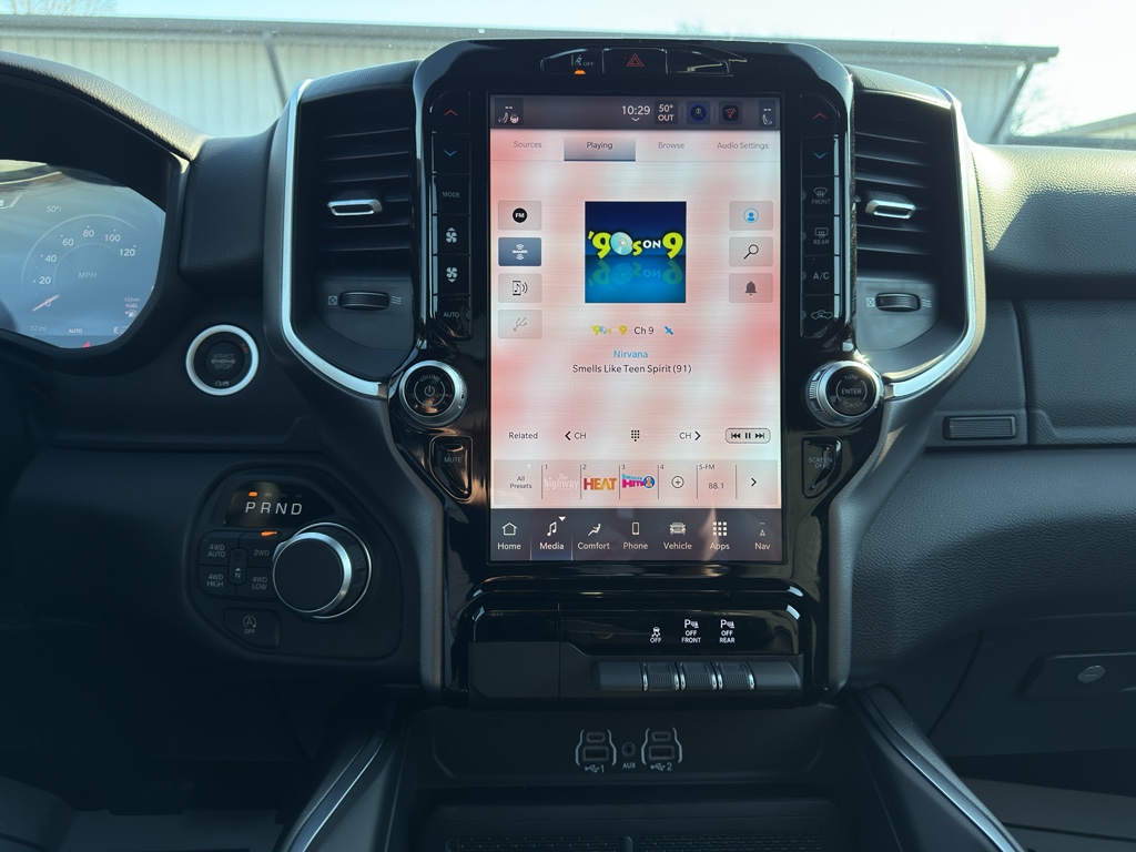 You'll never again be lost in a crowded city or a country region with the navigation system on this model. This vehicle is equipped with the latest generation of XM/Sirius Radio. Protect this Ram 1500 from unwanted accidents with a cutting edge backup camera system. This unit is pure luxury with a heated steering wheel. This unit offers Apple CarPlay for seamless connectivity. The state of the art park assist system will guide you easily into any spot. This 1/2 ton pickup comes equipped with Android Auto for seamless smartphone integration on the road. The leather seats in this 2026 Ram 1500 are a must for buyers looking for comfort, durability, and style. This Ram 1500 has auto-adjust speed for safe following. This vehicle keeps you comfortable with Auto Climate. Start it from inside with remote start. An off-road package is equipped on the Ram 1500. Bluetooth technology is built into this 1/2 ton pickup, keeping your hands on the steering wheel and your focus on the road.