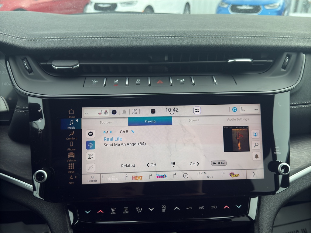 Protect this Jeep Grand Cherokee L from unwanted accidents with a cutting edge backup camera system. An off-road package is equipped on this 2026 Jeep Grand Cherokee L . The leather seats are soft and supportive on the Jeep Grand Cherokee L. Keep your hands warm all winter with a heated steering wheel in this model . This unit comes equipped with Android Auto for seamless smartphone integration on the road. You'll never again be lost in a crowded city or a country region with the navigation system on the vehicle. Never get into a cold vehicle again with the remote start feature on this unit. This unit features a hands-free Bluetooth phone system. This model has automated speed control that adjusts to maintain a safe following distance, enhancing highway driving convenience. The vehicle's Forward Collision Warning feature alerts drivers to potential front-end collisions. This model offers Apple CarPlay for seamless connectivity.