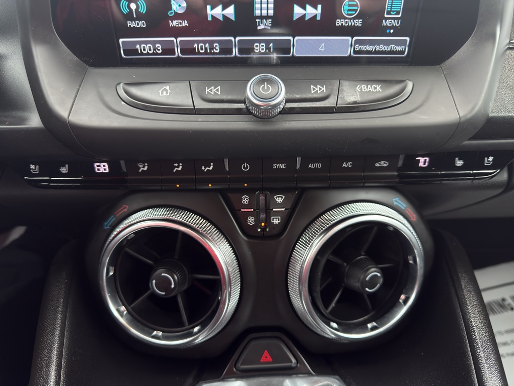 This model offers Automatic Climate Control for personalized comfort. The vehicle comes equipped with Android Auto for seamless smartphone integration on the road. Bluetooth technology is built into the vehicle, keeping your hands on the steering wheel and your focus on the road. Apple CarPlay: Seamless smartphone integration for this model - stay connected and entertained on the go! Our dealership has already run the CARFAX report, and it is clean. A clean CARFAX is a great asset for resale value in the future. The leather seats in this vehicle are a must for buyers looking for comfort, durability, and style. Protect this vehicle from unwanted accidents with a cutting edge backup camera system. Engulf yourself with the crystal clear sound of a BOSE sound system in this vehicle. Start this 2018 Chevrolet Camaro from inside with remote start. This vehicle has a V6, 3.6L high output engine. It is outfitted with an OnStar communication system.