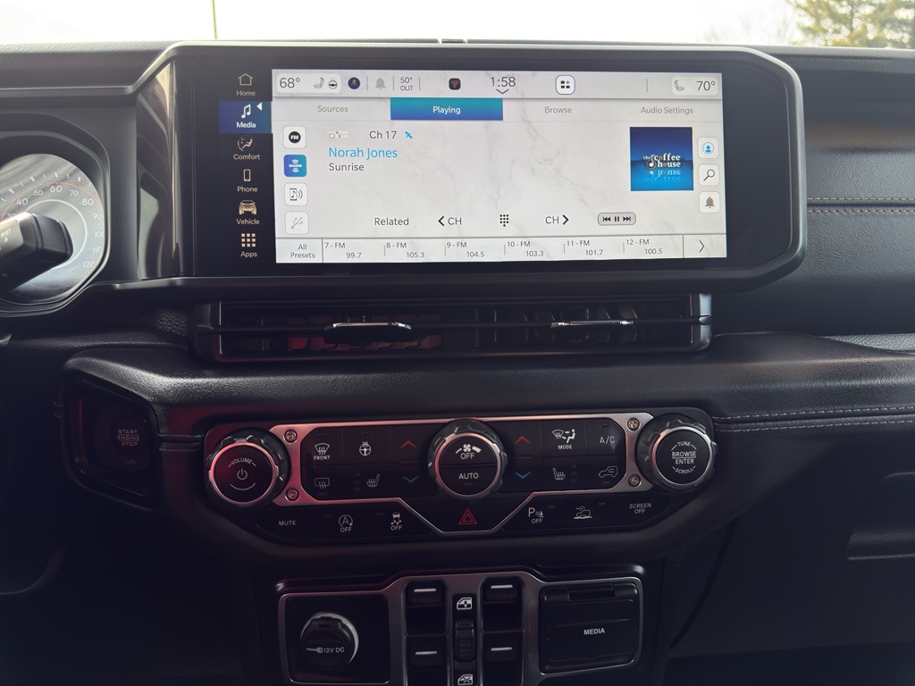 Bluetooth technology is built into it, keeping your hands on the steering wheel and your focus on the road. It's Forward Collision Warning feature alerts drivers to potential front-end collisions. This Jeep Gladiator has auto-adjust speed for safe following. This vehicle is a certified CARFAX 1-owner. See what's behind you with the back up camera on the Jeep Gladiator. It comes equipped with Android Auto for seamless smartphone integration on the road. Our dealership has already run the CARFAX report and it is clean. A clean CARFAX is a great asset for resale value in the future. This unit offers Apple CarPlay for seamless connectivity. When you encounter slick or muddy roads, you can engage the four wheel drive on it and drive with confidence. The vehicle has a V6, 3.6L high output engine. It is painted with a sleek and sophisticated black color. Quickly unlock this Jeep Gladiator with keyless entry.